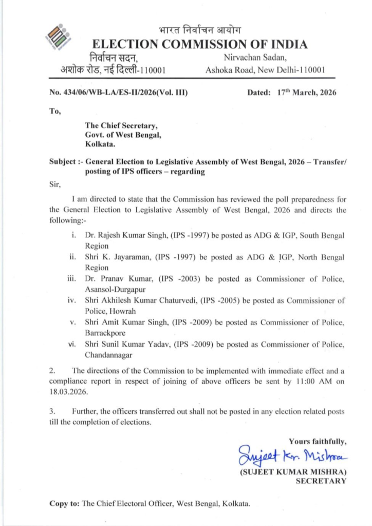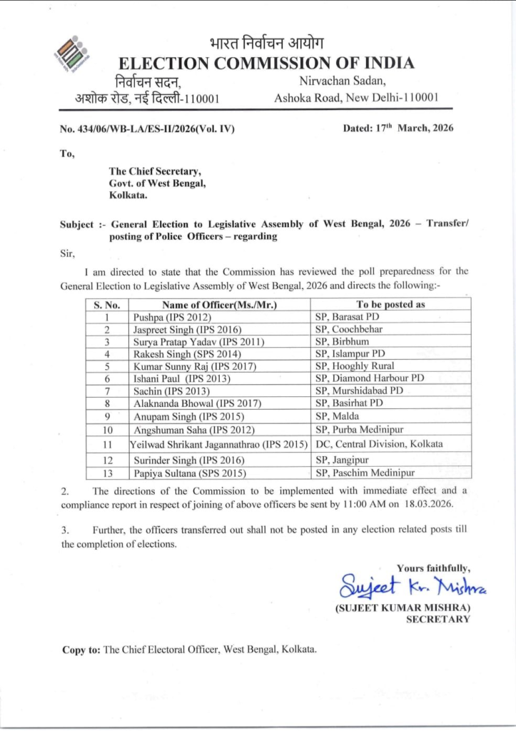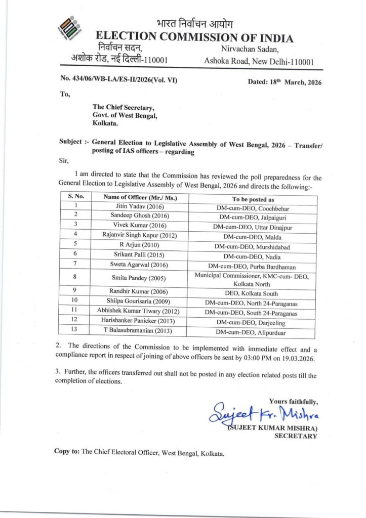 Read More: पश्चिम बंगाल चुनाव से पहले DM और KMC कमिश्नर हटाए गए